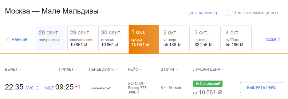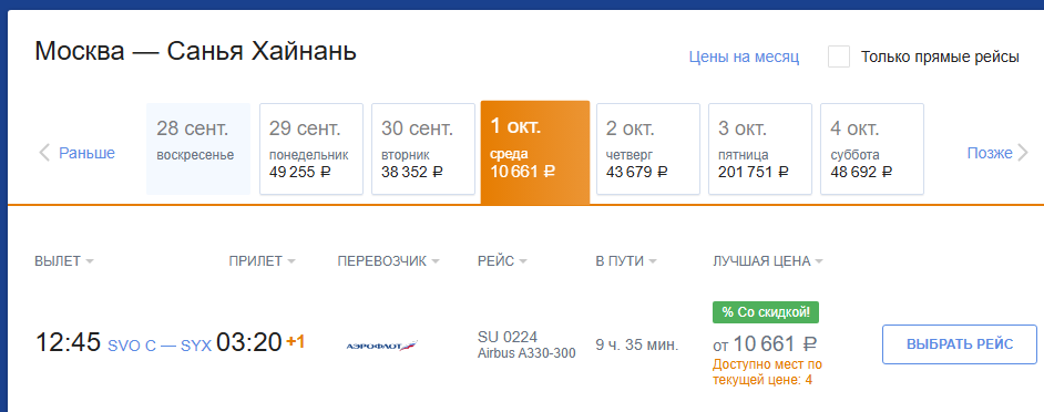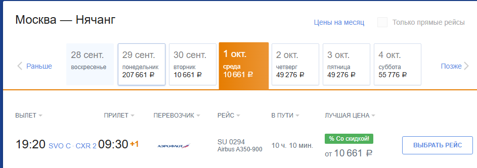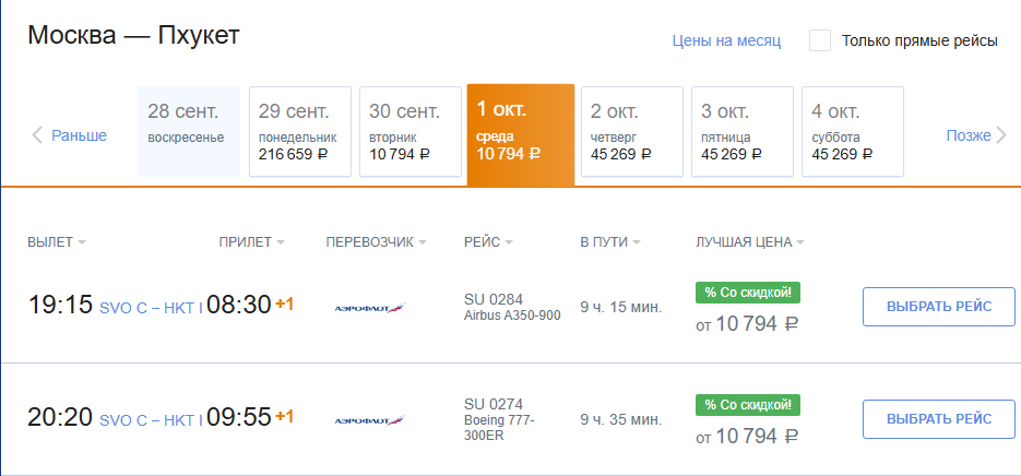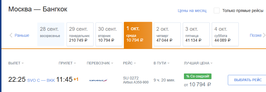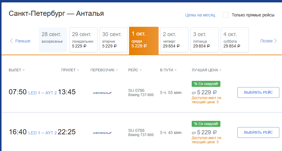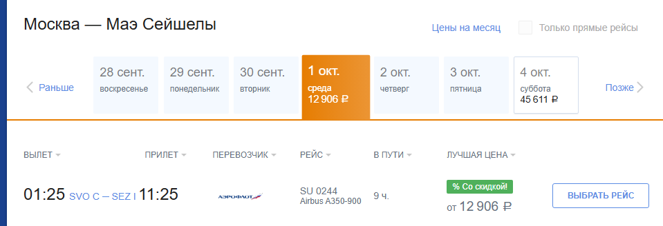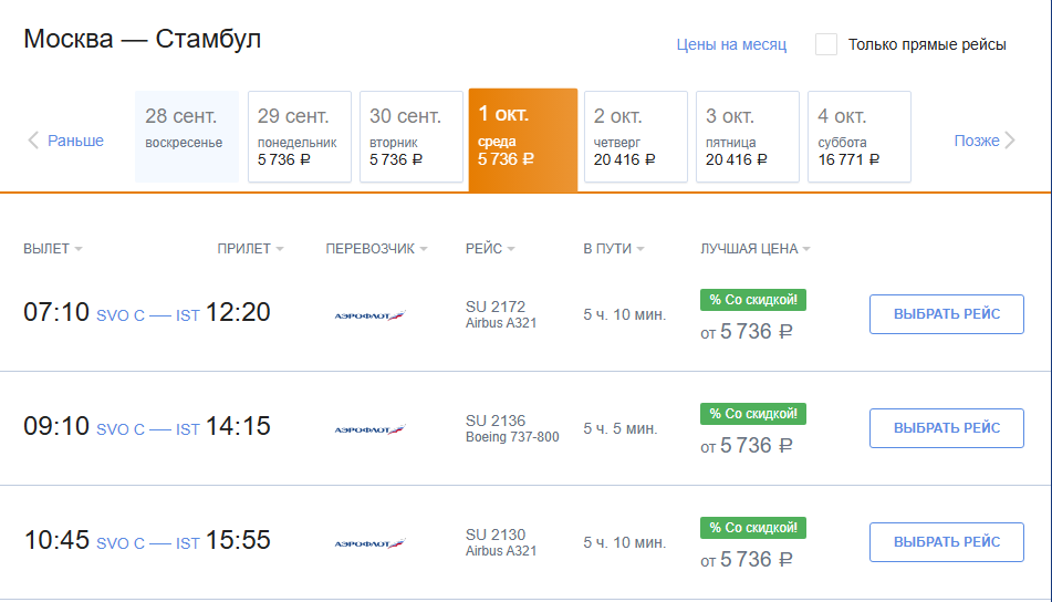 Аэрофлот: билеты из России за границу на 1 октября