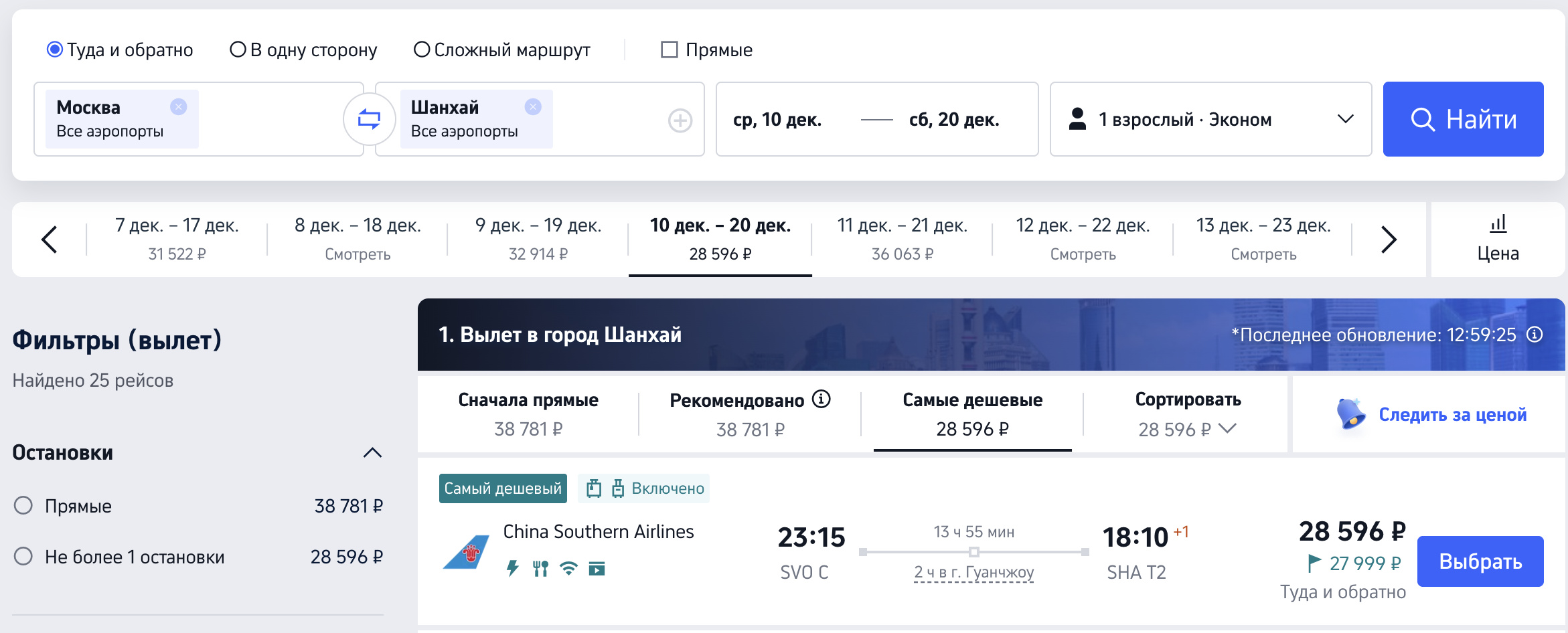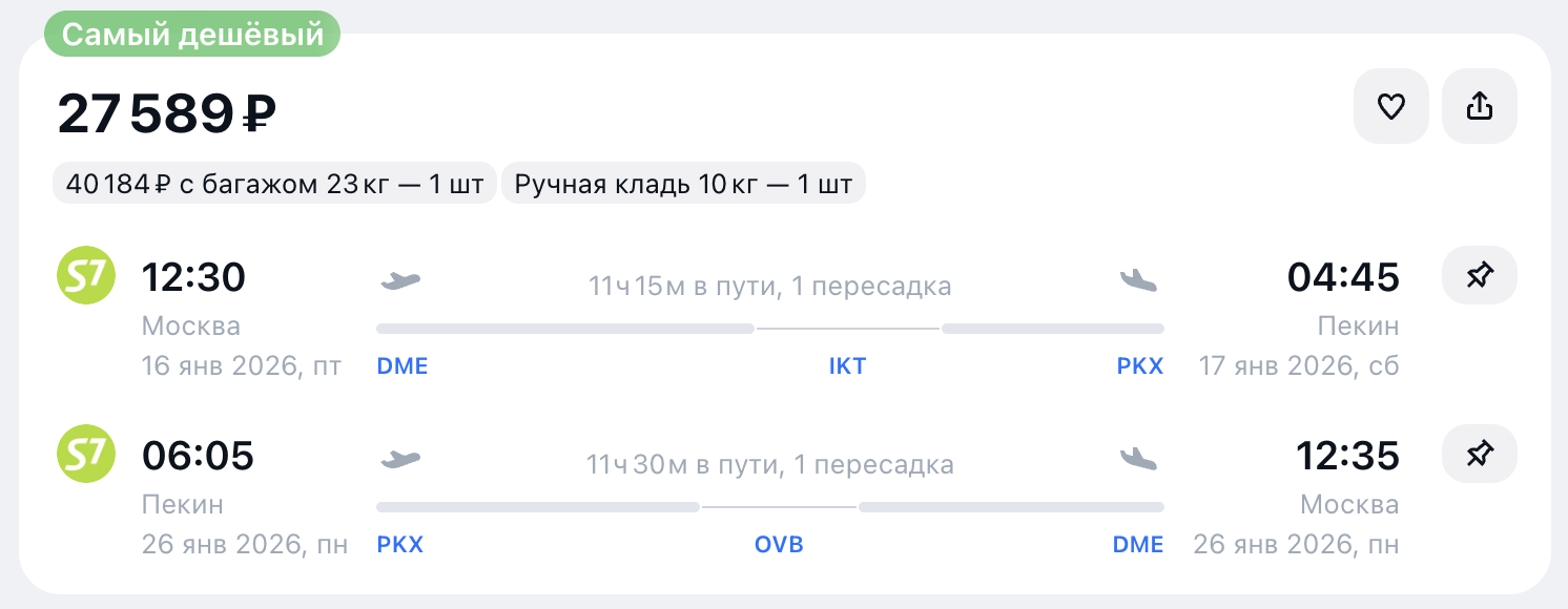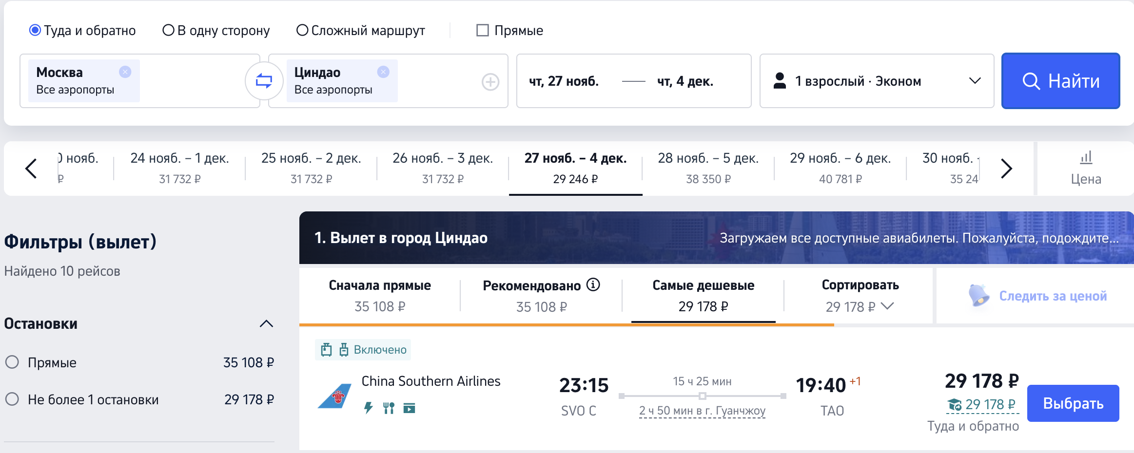 А у авиакомпаний China Southern и S7 можно найти билеты из Москвы в Шанхай, Пекин, Чэнду, Циндао, Ханчжоу и Чунцин от 27600 рублей туда-обратно.