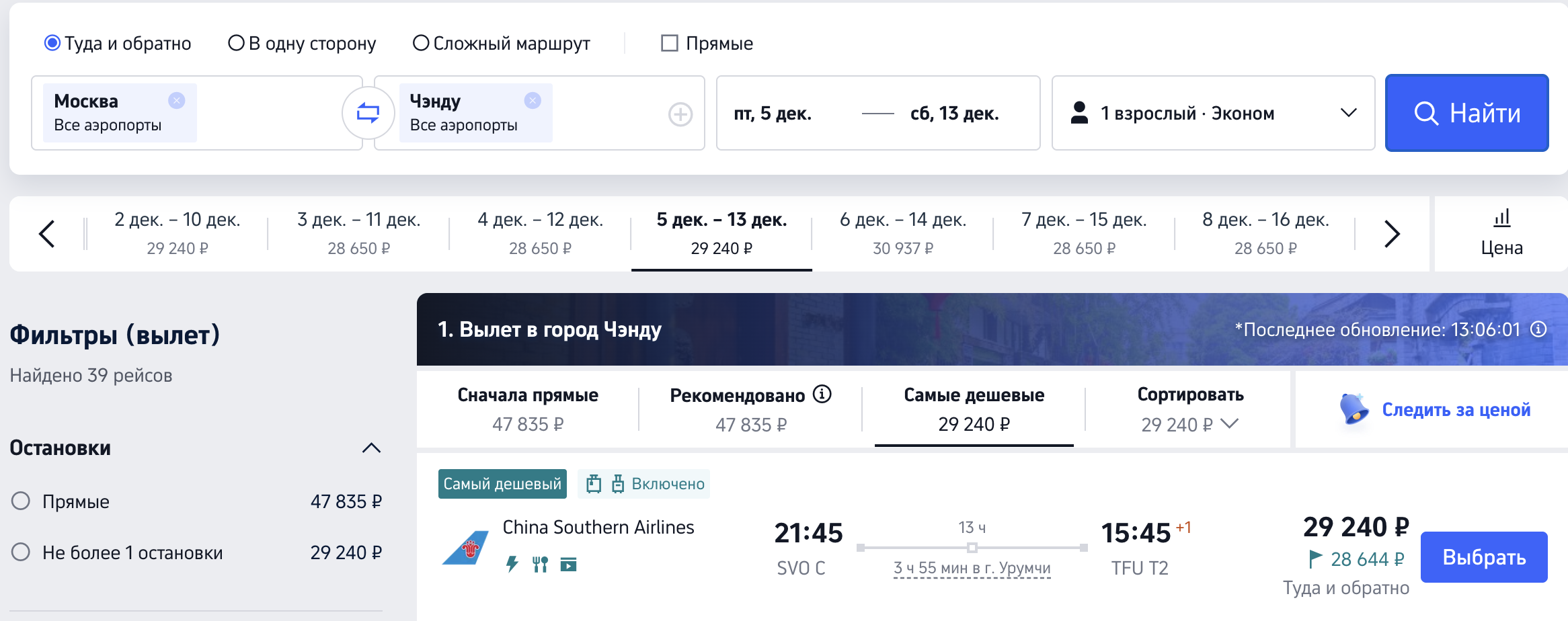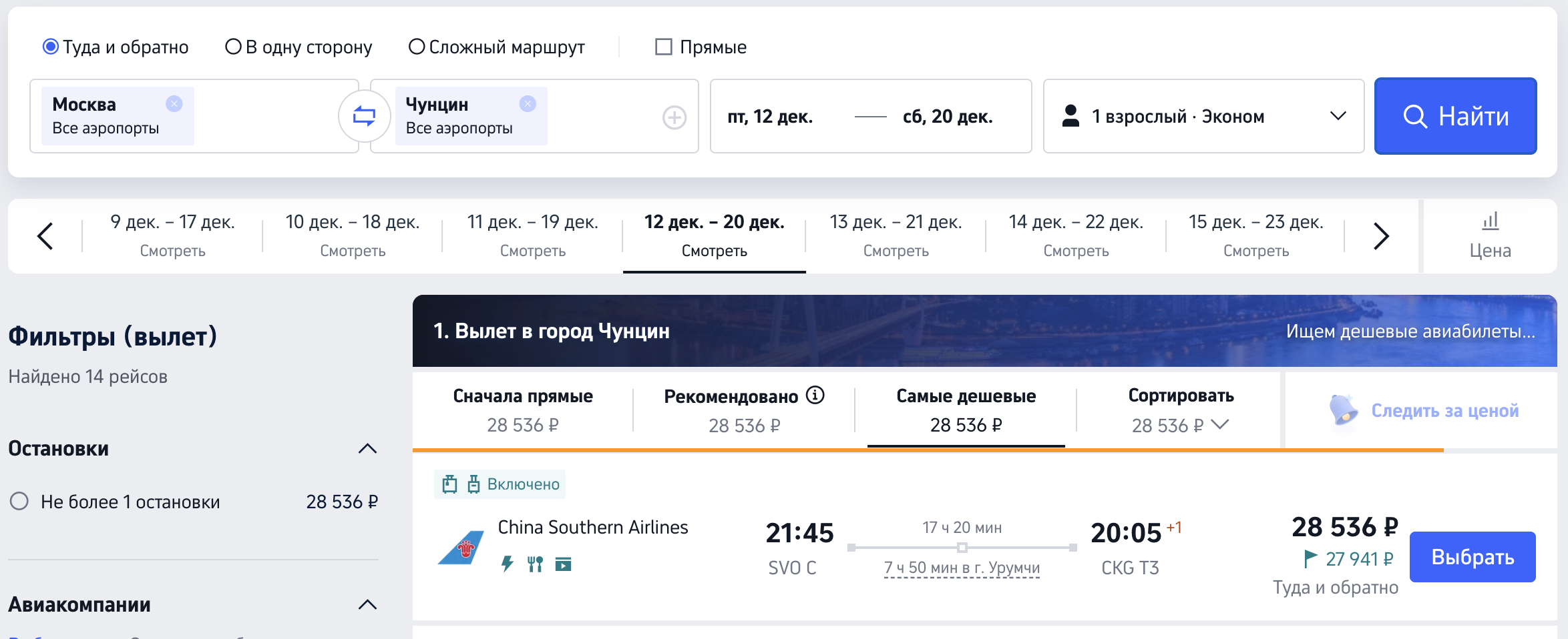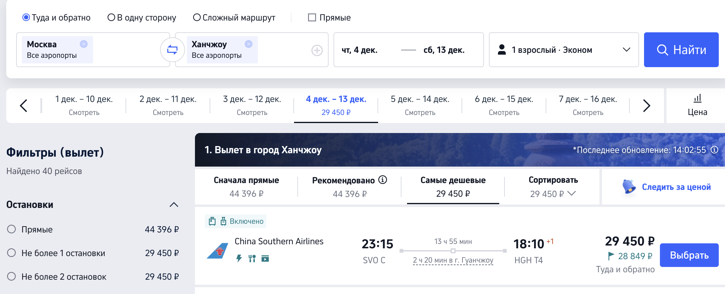 Билеты берем через сервисы aviasales.ru / trip.com.