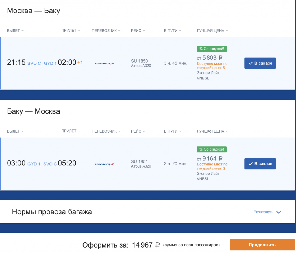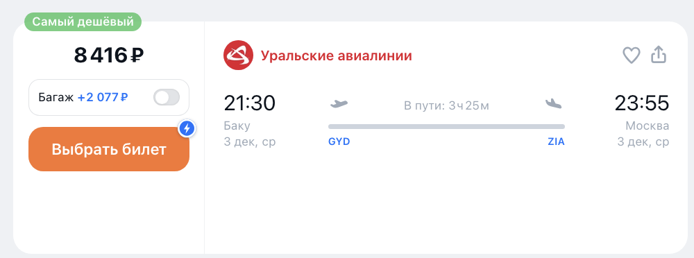 Распродажа Azal закончилась, но Аэрофлот и Уральцы всё еще в деле и предлагают слетать в Баку от 6000 рублей в одну сторону или от 14400 в обе. Виза не нужна, а шутка про Ковид пригодится.