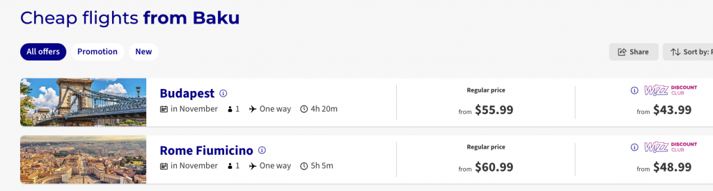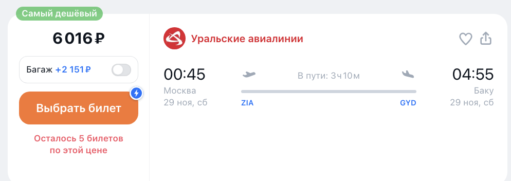 Вряд ли эти билеты подходят в качестве трамплина куда-то дальше — всё-таки из Баку не так много направлений, да и те стоят совсем не 20 долларов