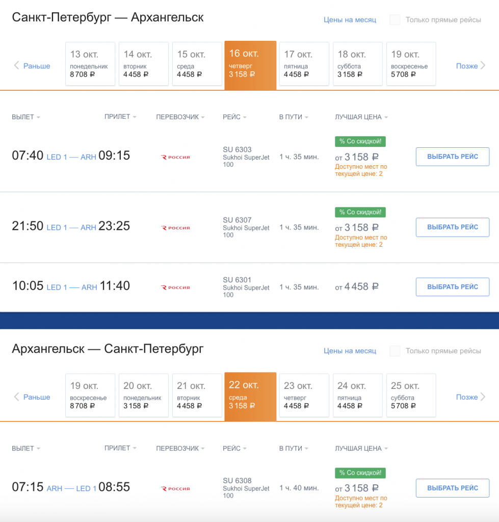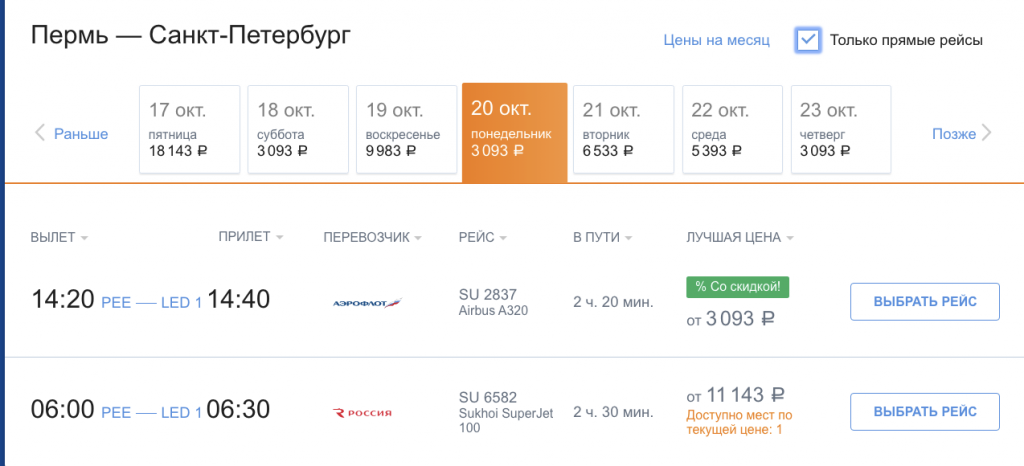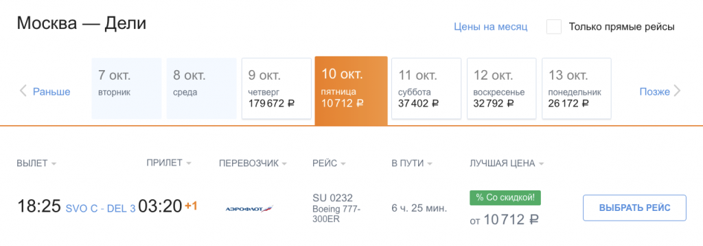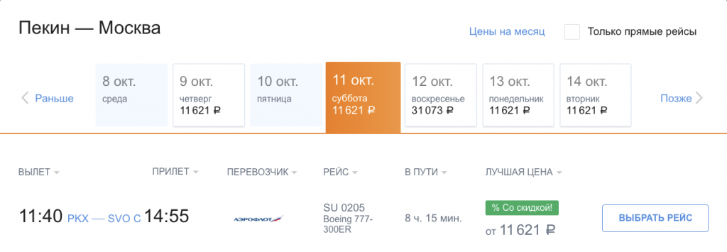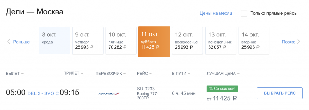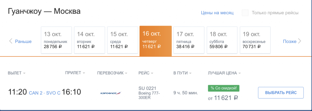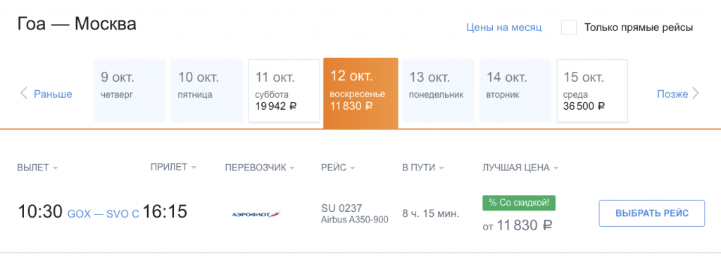 У Аэрофлота незначительное снижение цен по некоторым направлениям на октябрь. Проверьте своё на авиасейлс.