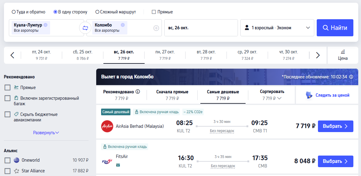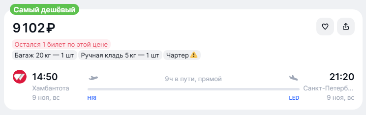 Хамбантота — Петербург (билетов МНОГО, а не один):