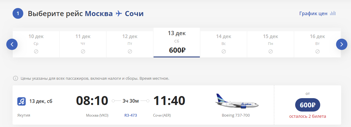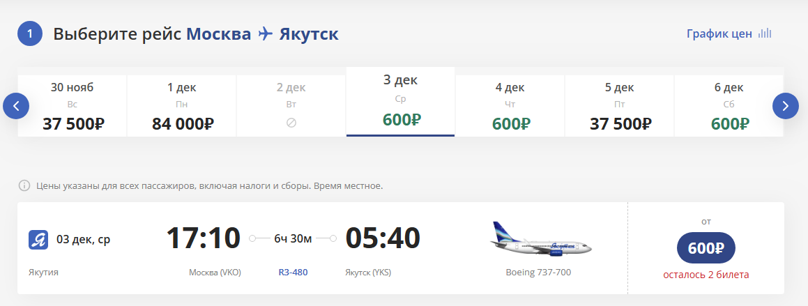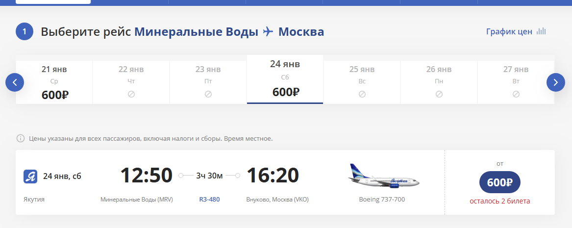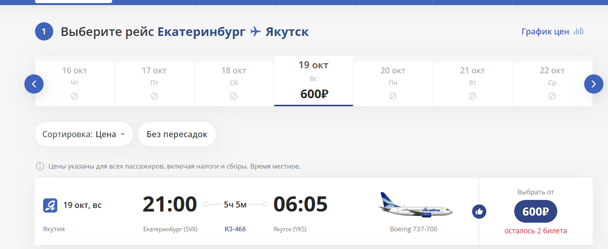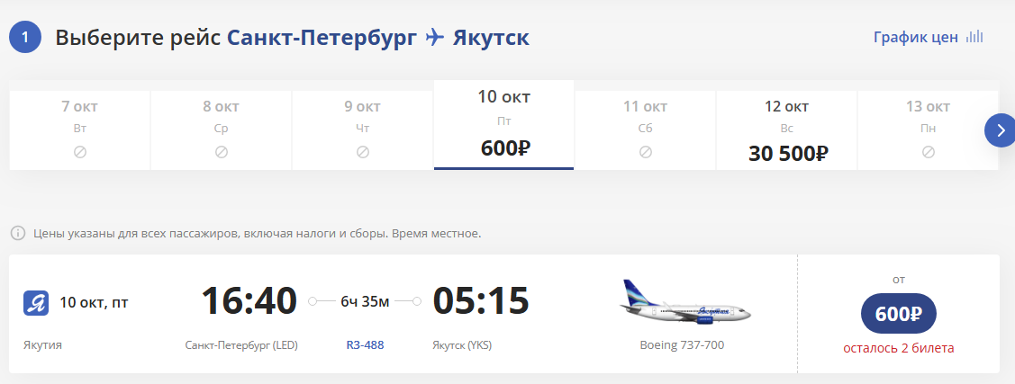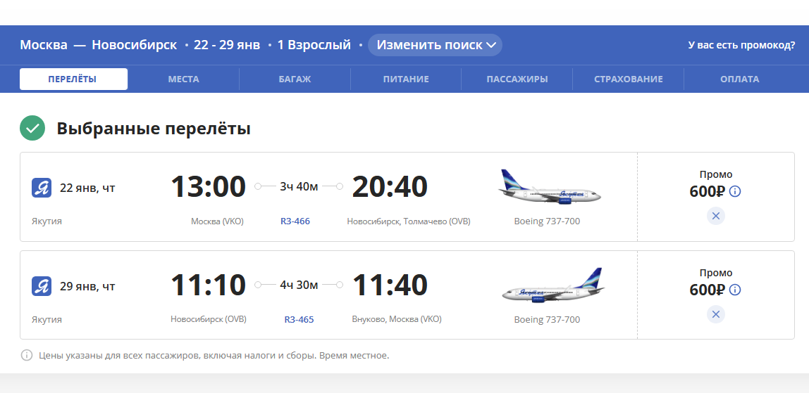 Авиакомпания Якутия запустила распродажу с копеечными билетами: полеты всего от 600 рублей.