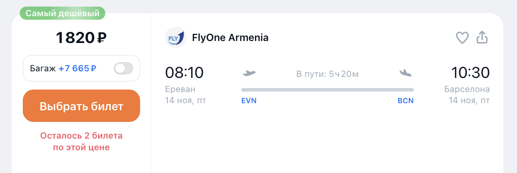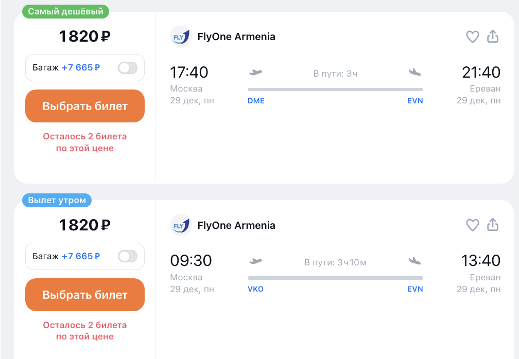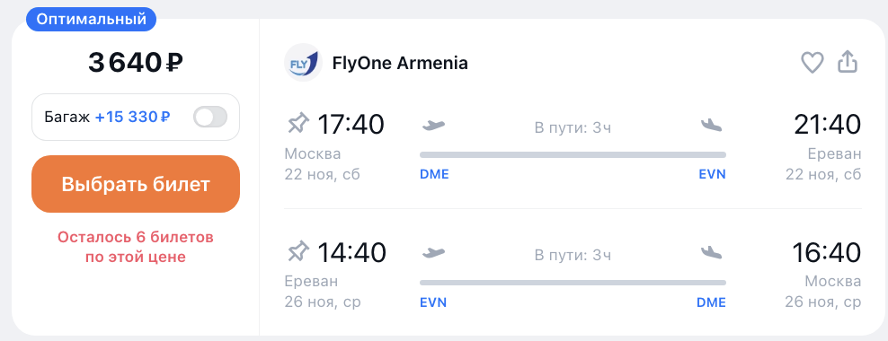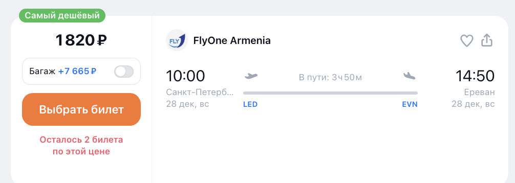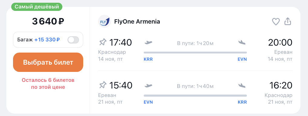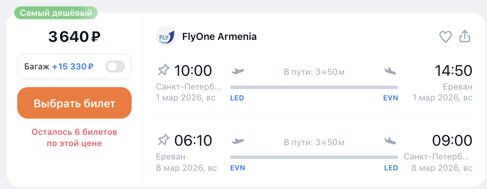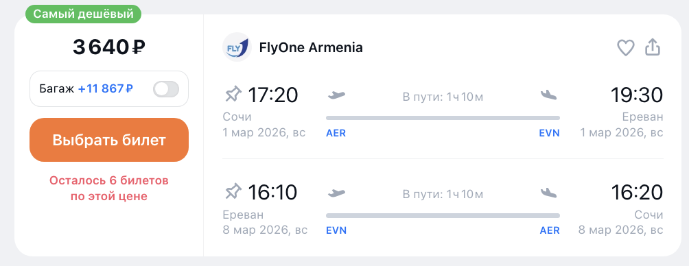 ААААА: стартовала распродажа Flyone с почти бесплатными билетами из России в Армению и дальше
