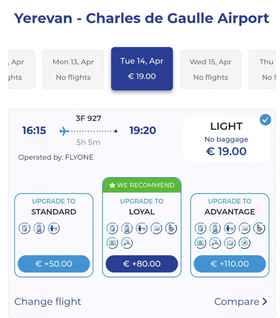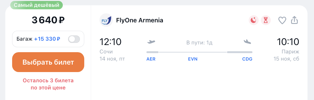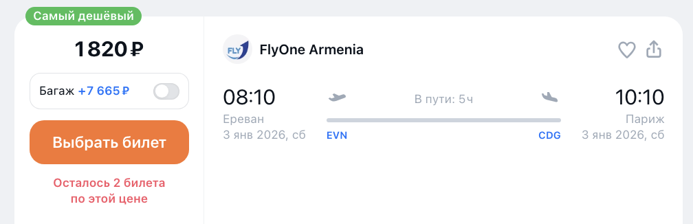 Главное-5: пока кажется, что билеты по маршруту Москва — Париж придется покупать по отдельности: Москва — Ереван + Ереван — Париж: заложите побольше времени на стыковки.