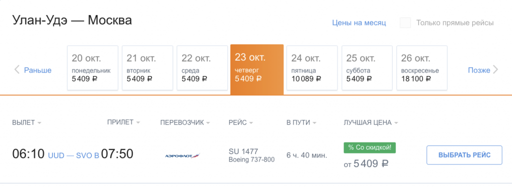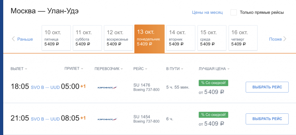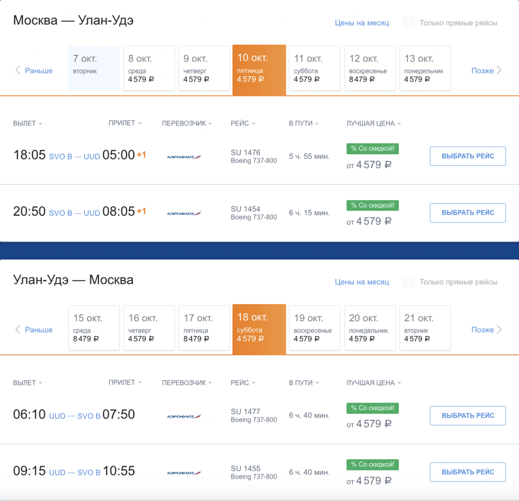 Промо-тариф у Аэрофлота: весь октябрь можно летать из Москвы в Улан-Удэ или наоборот за 9160 рублей.