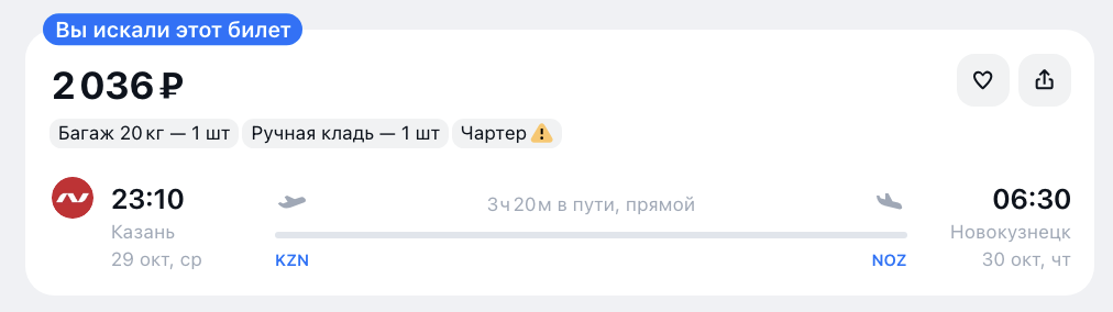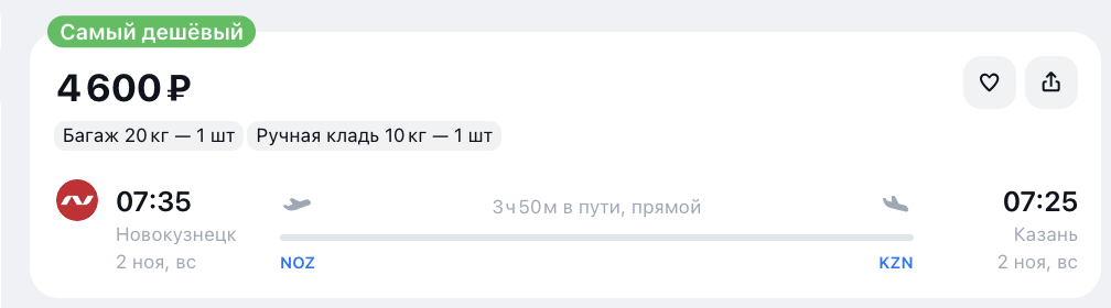 Опять этим казанцам: на следующей неделе можно улететь прямым рейсом с багажом в Новокузнецк за 2000 рублей. И вернуться за 4600 рублей.