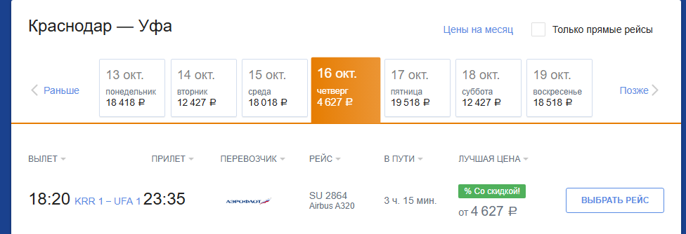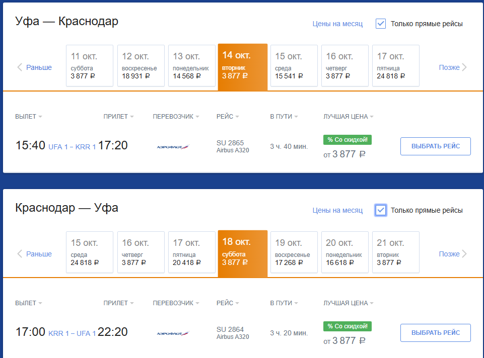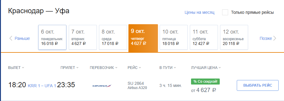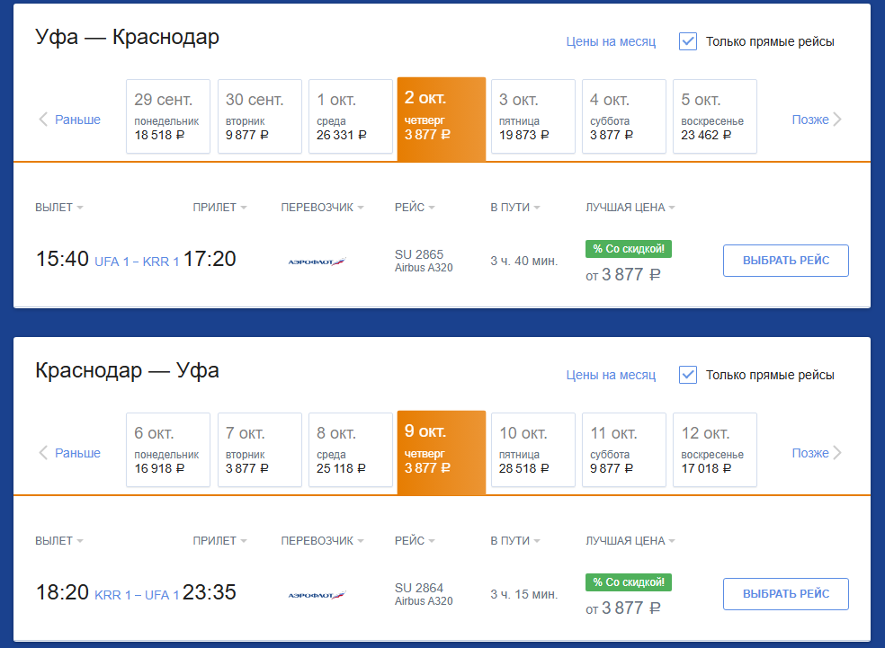 • прямые рейсы Аэрофлота в Краснодар за 7700 рублей туда-обратно.