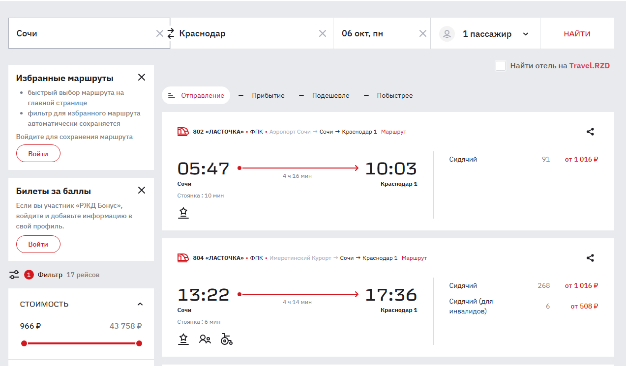 • Сочи и Краснодар в одной поездке за 7400 рублей;