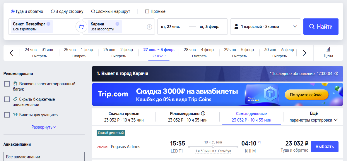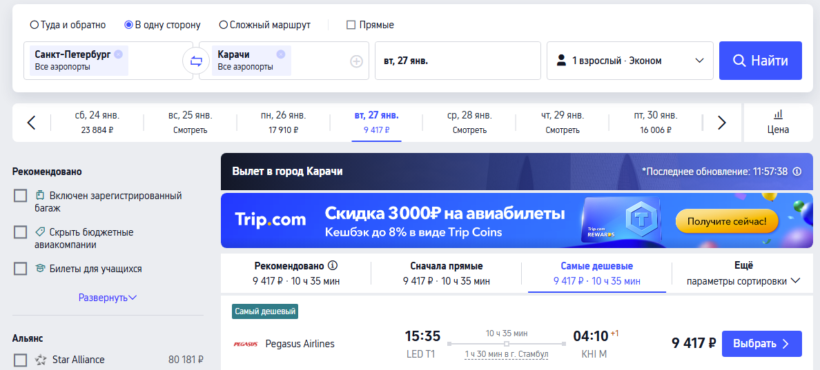 Питер, лови дешевые билеты от Пегасуса на заиму: полеты в Пакистан за 9200 рублей в один конец и за 22800 рублей туда-обратно.