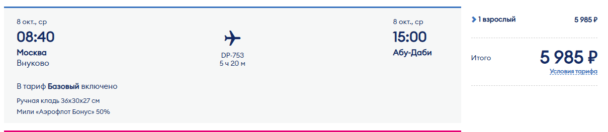 Москвичи, такой цены не было уже давно: прямой рейс в Абу-Даби за 5985 рублей.