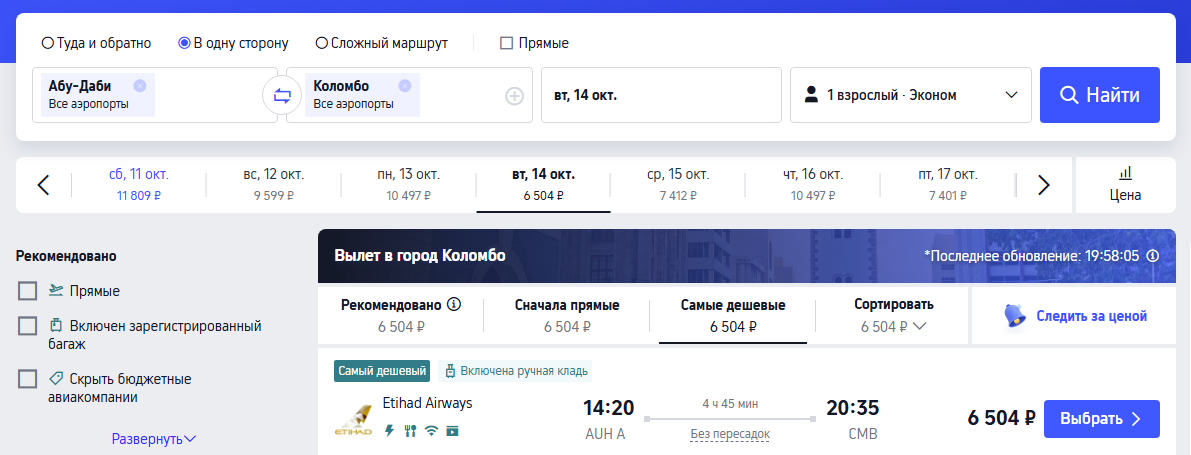 Хамбантота — Москва (билетов МНОГО, а не один):