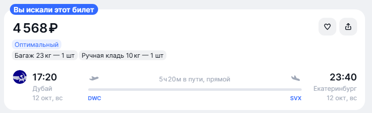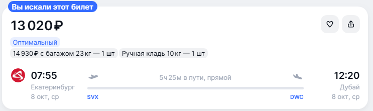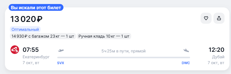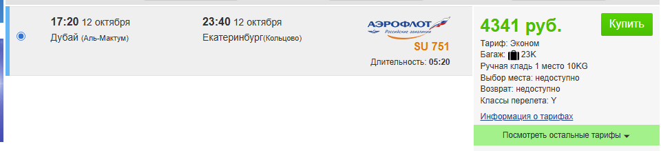 Екб — Дубай на 8 октября: