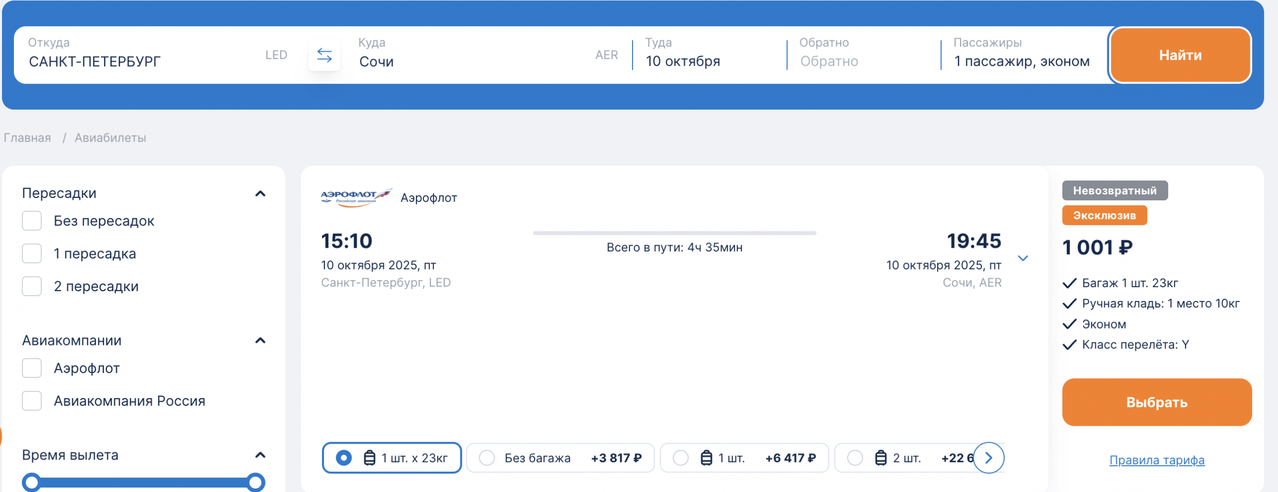 Прямые рейсы из Москвы, Питера и регионов в Сочи