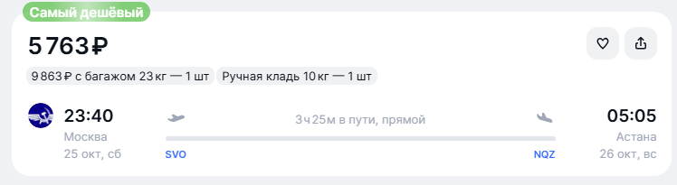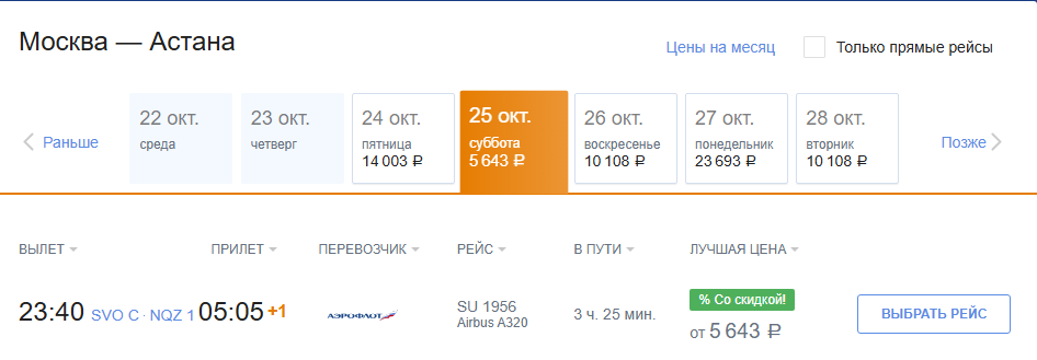 Аэрофлот снова скинул цены на ближайшие даты: прямые рейсы из Москвы в столицу Казахстана за 5600 рублей в один конец и за 12600 рублей туда-обратно.
