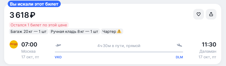 Прямые рейсы из Москвы в Турцию (Бодрум и Даламан)