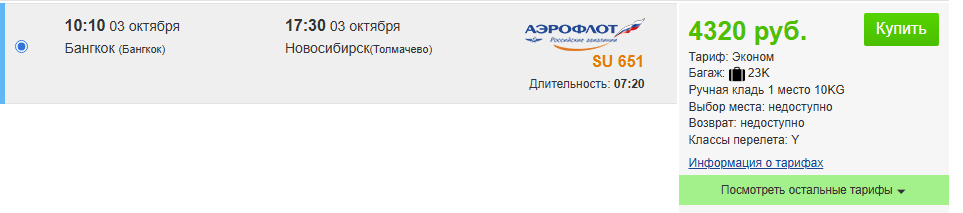 Дешевле некуда: прямые рейсы Аэрофлота из Бангкока в Новосибирск, Иркутск и Хабаровск за 4300 рублей.