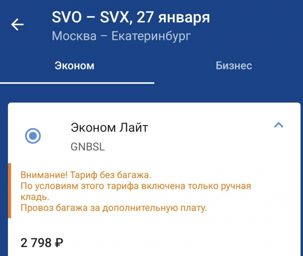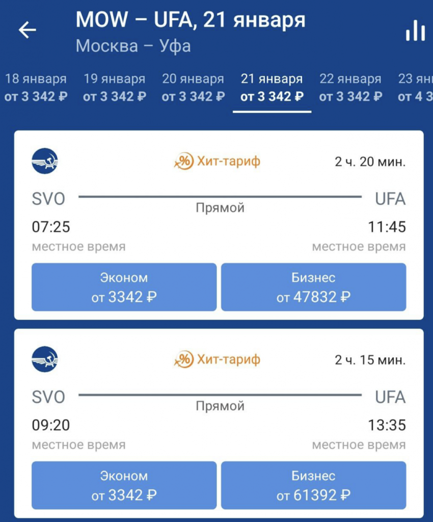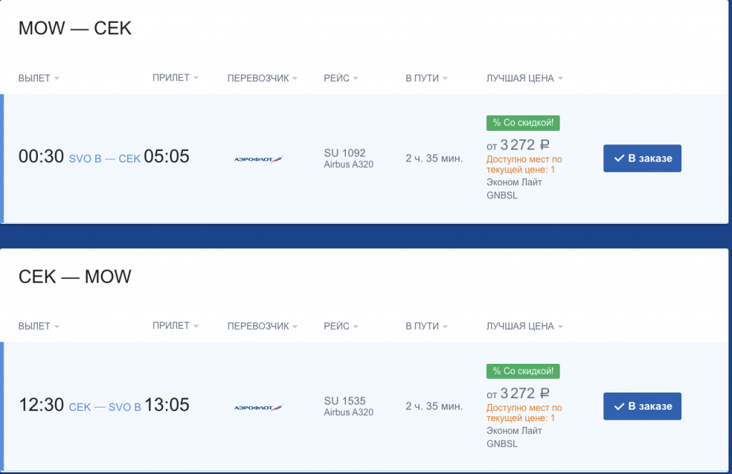 Москва — Екб — Москва за 6600