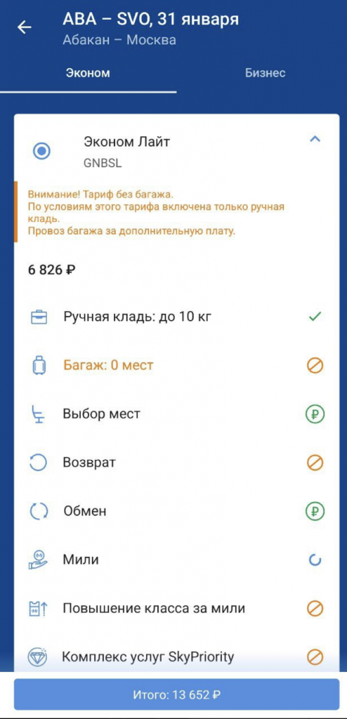 Москва — Абакан — Москва за 13600