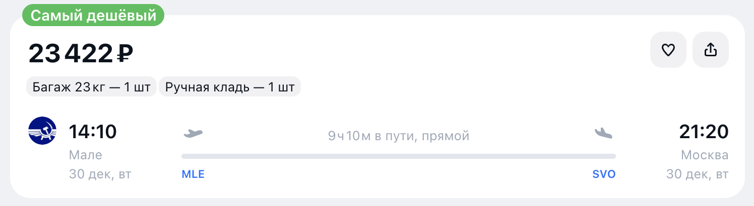 Строим плана на конец года: полеты из Москвы на Мальдивы за 42500 рублей туда-обратно. Или за 53500, но с возвратом бизнес-классом.