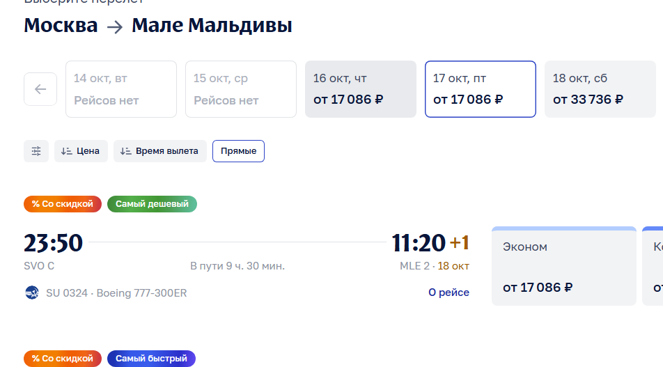Доступная экзотика: прямой рейс Аэрофлота из Москвы в Мале за 17100 рублей.