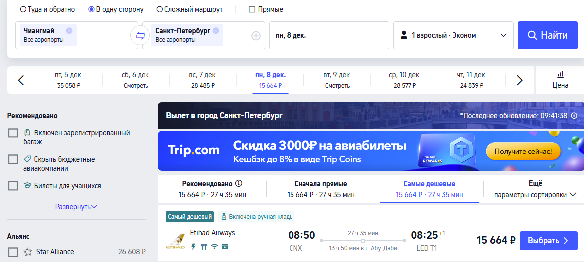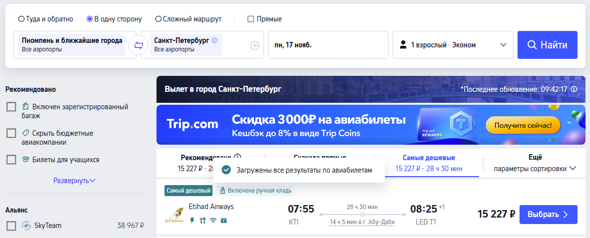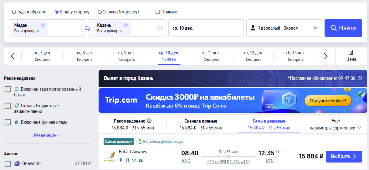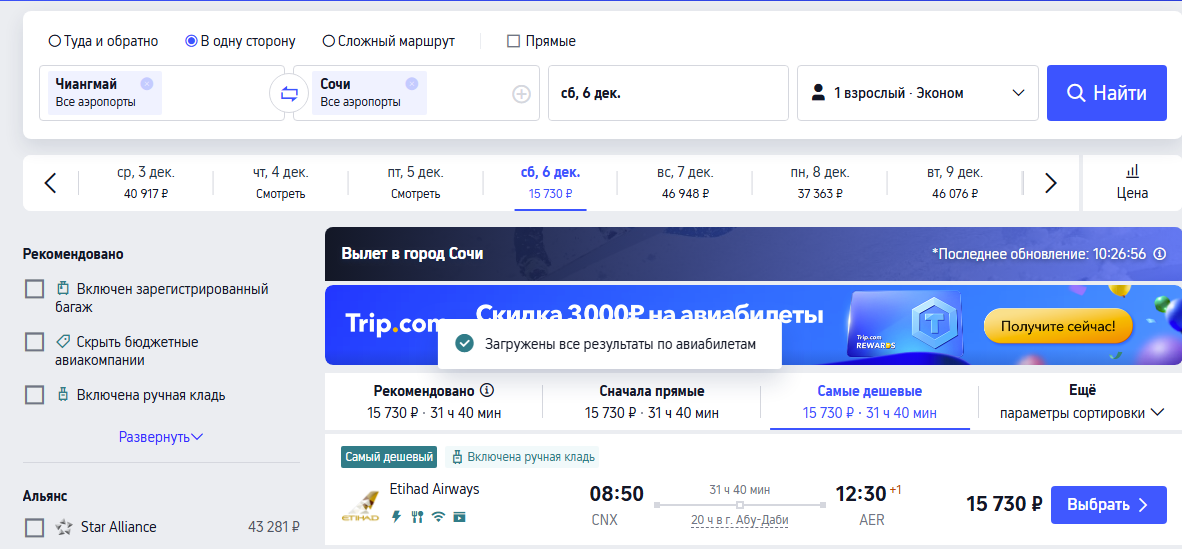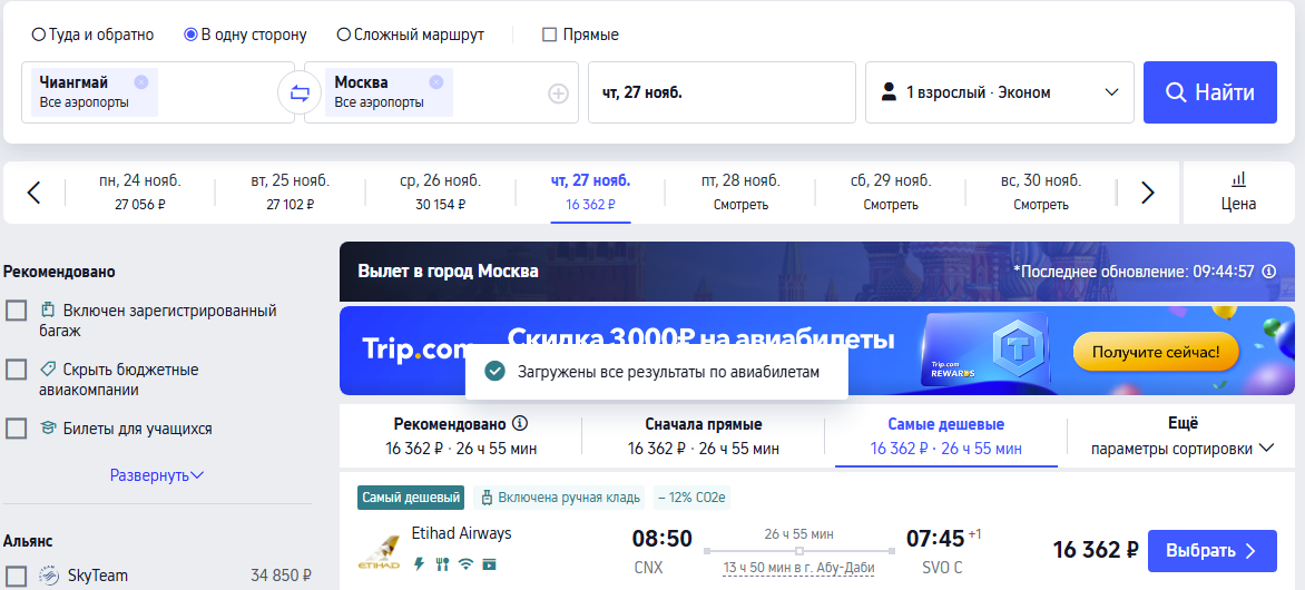 Покупать билеты дешевле всего через trip.com / aviasales.ru.