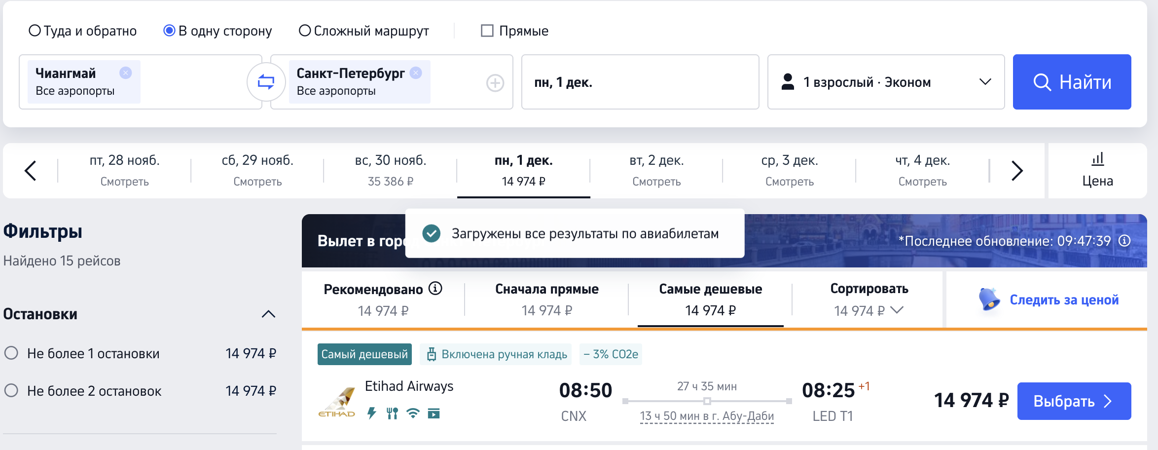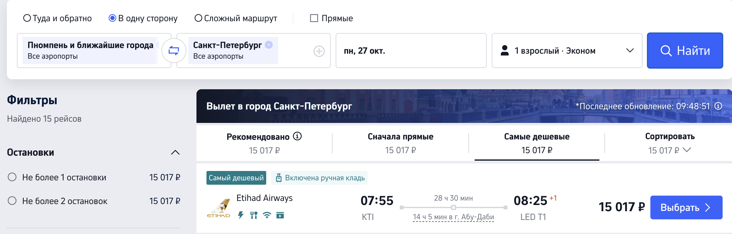 У достойной авиакомпании Etihad Airways снова нашлись дешевые возвраты из ЮВА: полеты из Таиланда, Вьетнама, Индонезии и Камбоджи в Петербург и Сочи от 14900 рублей.