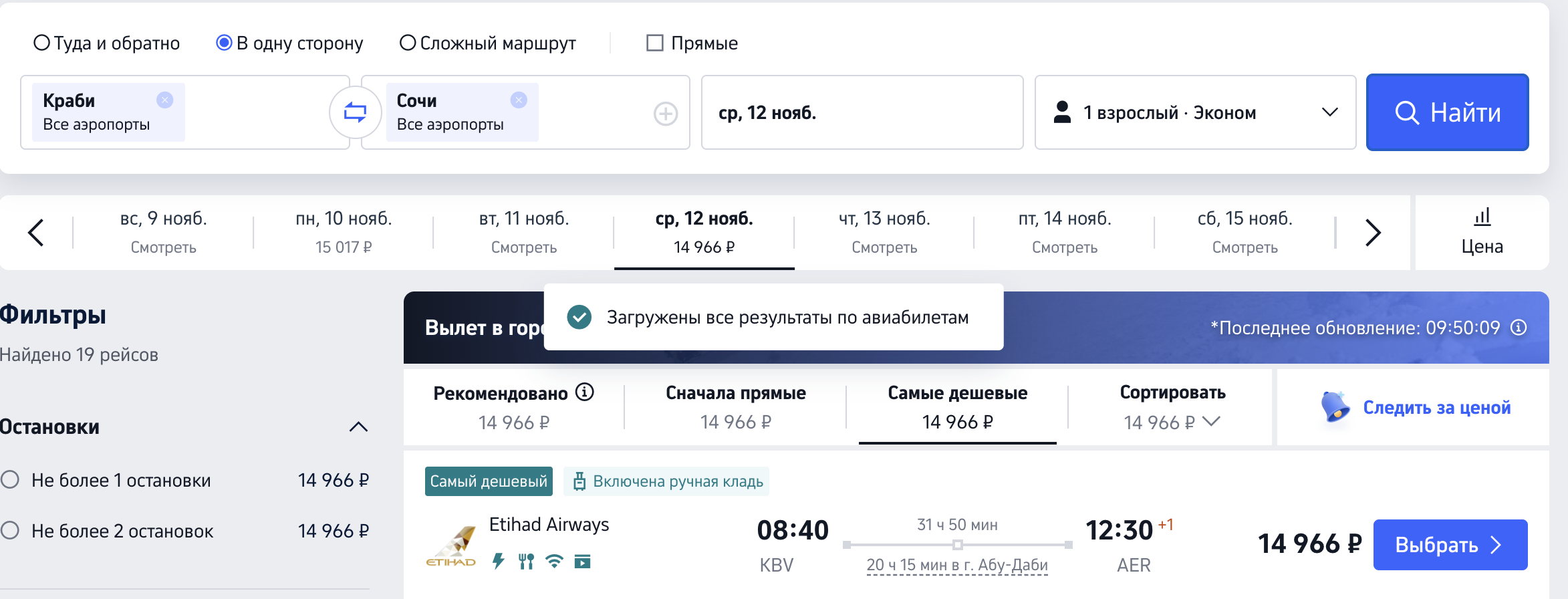 Краби — Сочи (+20, 22, 27, 29 октября):