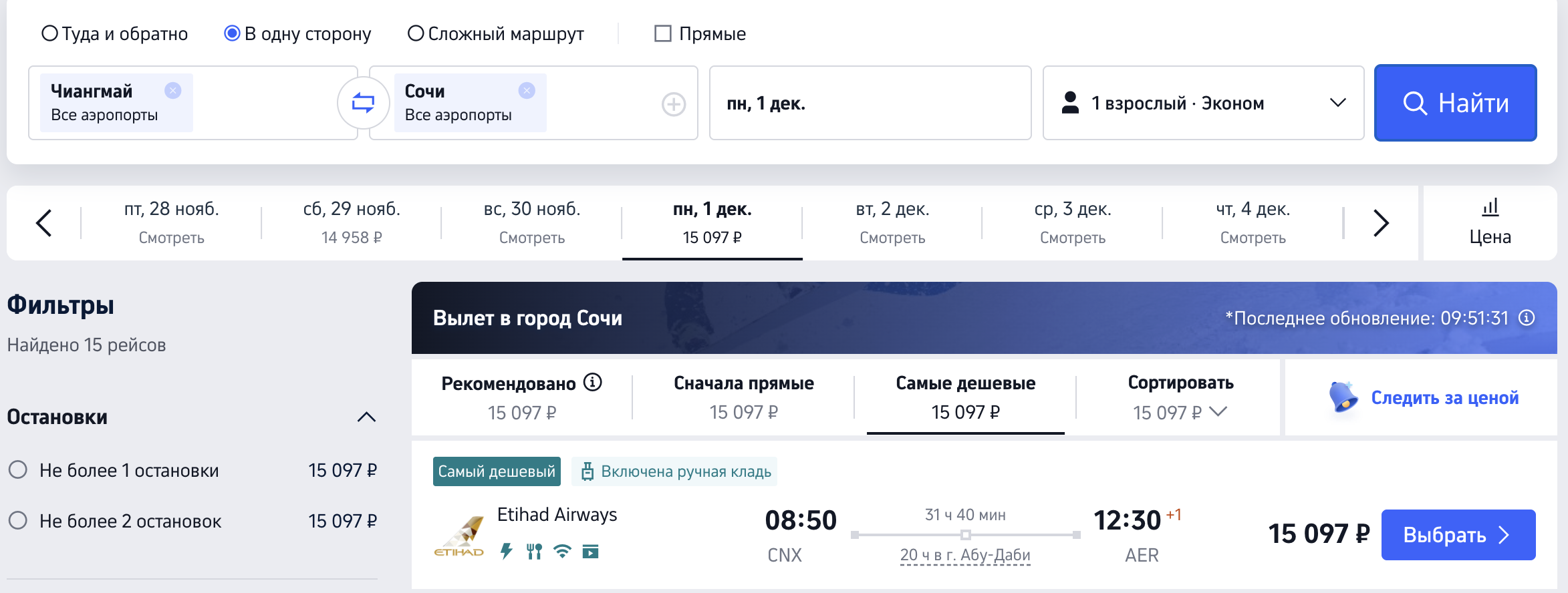 Чиангмай — Сочи (+15, 17, 24, 29 ноября):