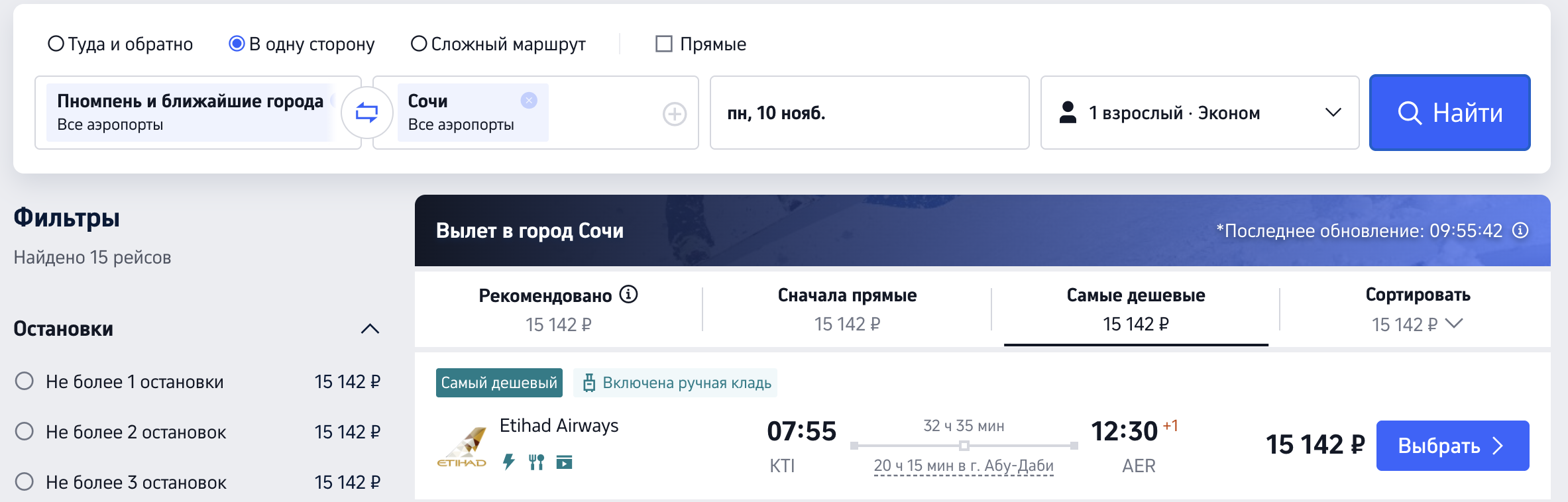 Пномпень — Сочи (+20, 27 октября):