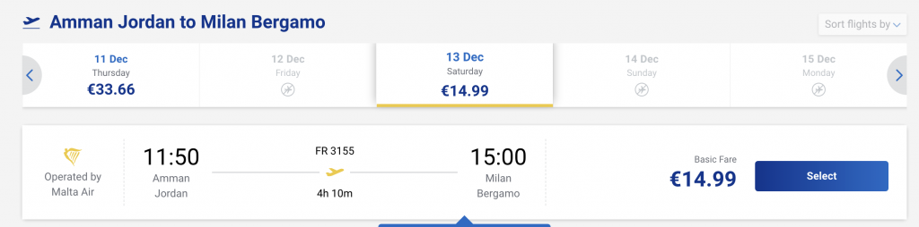 Амман — Милан (или другой город в Италии или Вена/Будапешт/Пафос) за 15 евро