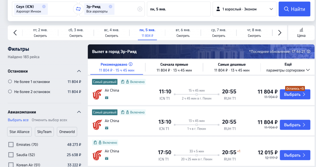 Сеул — Пекин — Эр-Рияд (октябрь-январь)