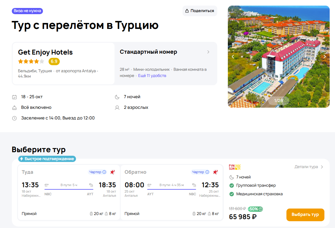 Нижнекамск, тут подвезли дешевый тур в Турцию: 7 ночей за 32990 рублей с человека.