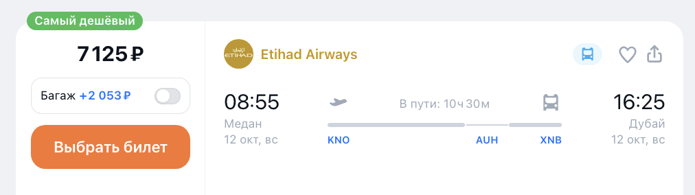 Салам, тут Etihad пошел ва-банк в неравной битве с китайскими и индийскими авиакомпаниями и выкатил чудо-тарифы на октябрь-ноябрь. Видим дешевые билеты из Индонезии, Вьетнама и Таиланда в Абу-Даби / Дубай (выходите там, где вам удобно). 6900 рублей — пусть и без багажа — это шик-блеск.