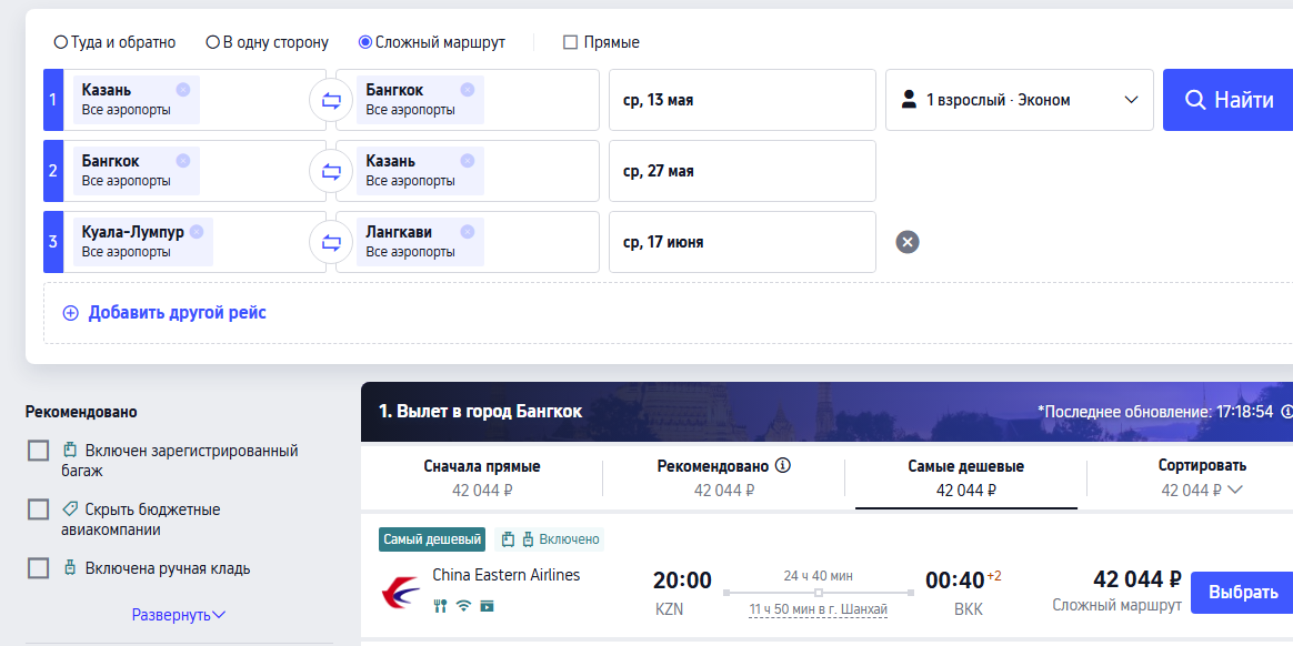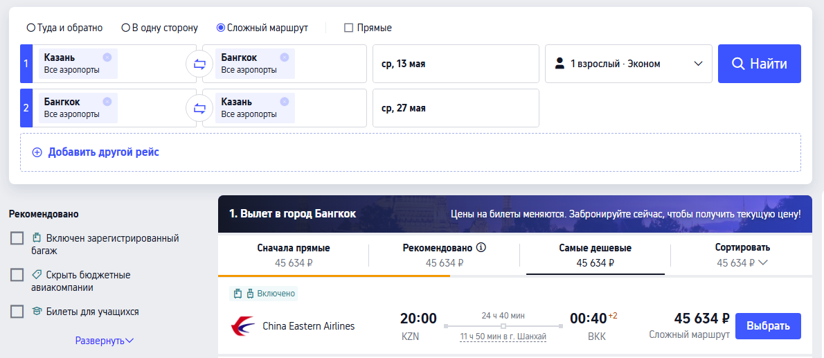 Вылеты из Казани по средам, пятницам и воскресеньям.