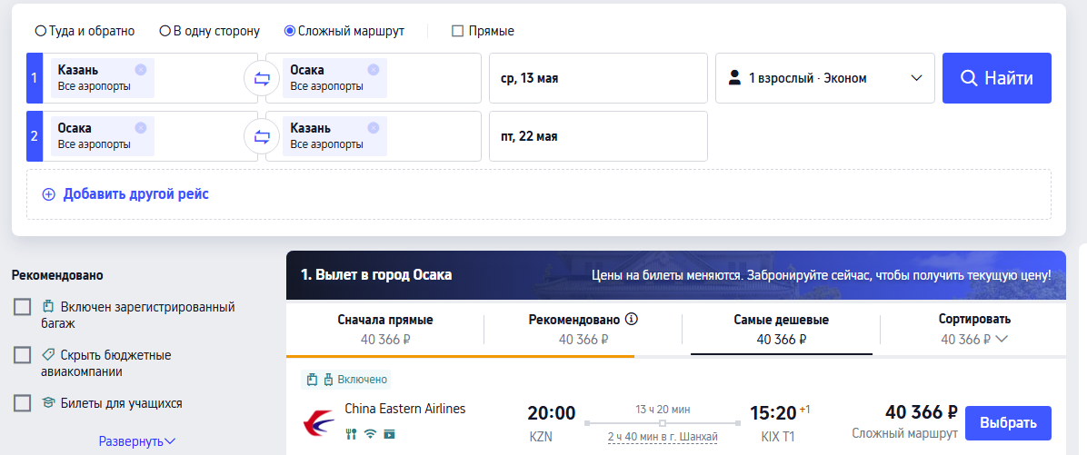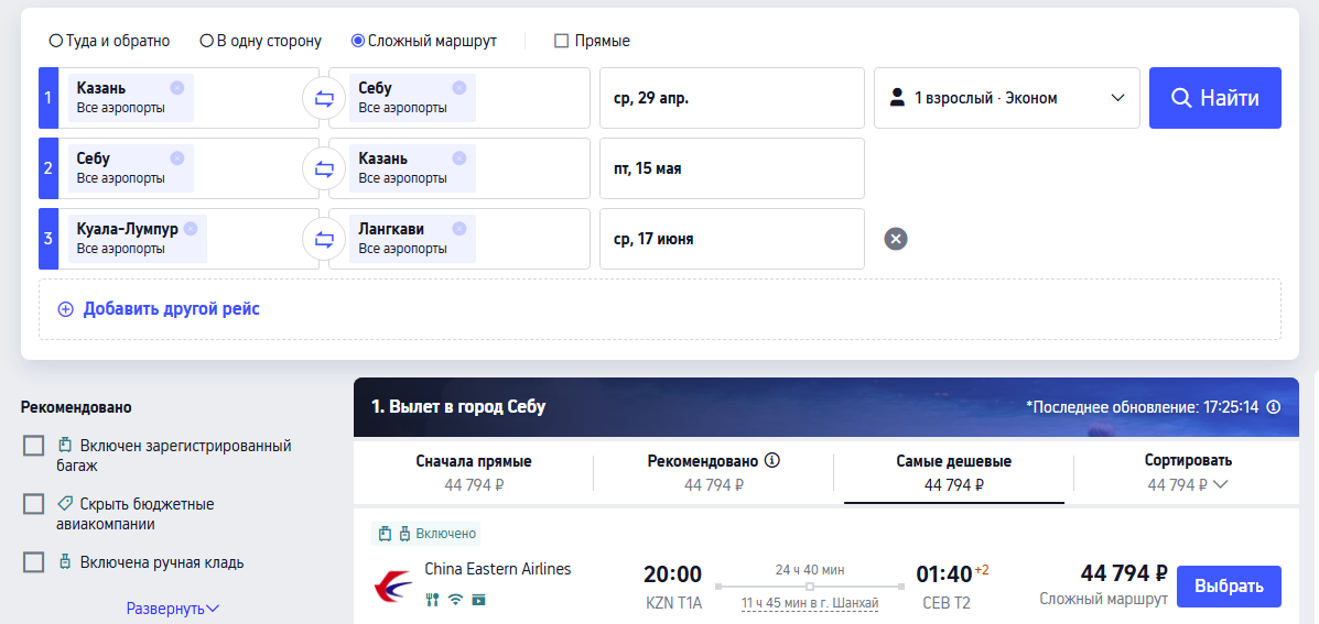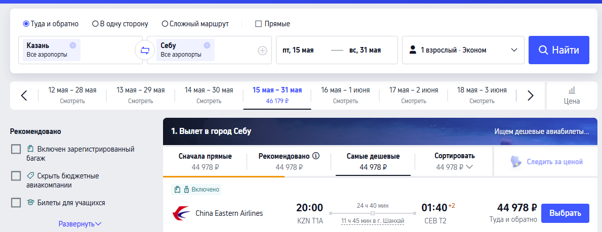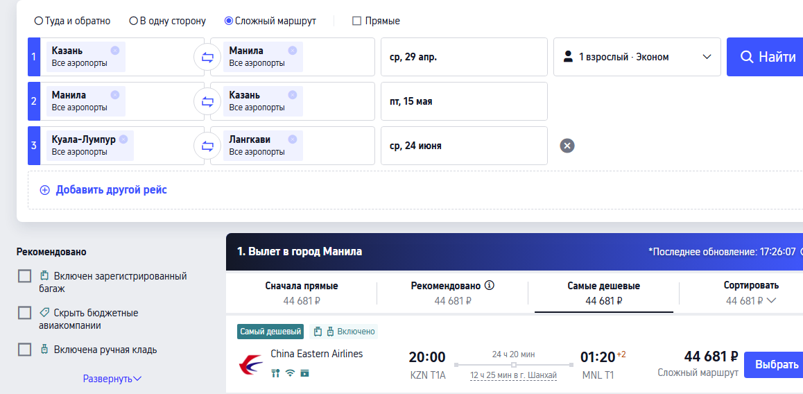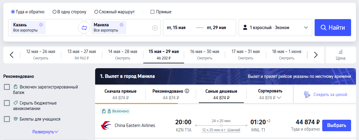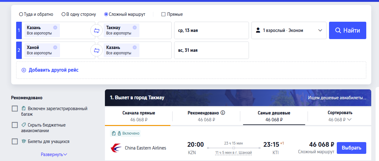 Авиакомпания China Eastern Airlines открыла продажу билетов на апрель-июнь: полеты из Казани в Китай, Японию, Вьетнам, Таиланд, на Филиппины и в Новую Зеландию от 32200 рублей туда-обратно.